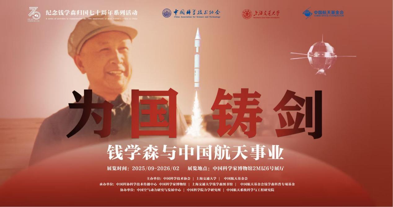 ?1949年中華人民共和國成立之后,黨中央高瞻遠矚、審時度勢,做出發展以“兩彈一星”為核心的國防尖端科學技術的決策。1955年,錢學森滿懷愛國熱情,沖破藩籬,毅然歸國,投身火箭、導彈、人造地球衛星等尖端技術的研制工作。2025年是錢學森同志歸國七十周年。為進一步學習貫徹習近平總書記關于大力弘揚科學家精神的重要指示,講好錢學森故事,回應公眾對高質量科普日益增長的需求,中國科學技術協會、上海交通大學、中國航天基金會共同策劃《為國鑄劍:錢學森與中國航天事業》專題展覽。